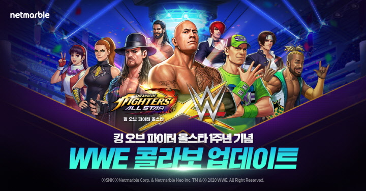 넷마블은 액션 RPG <더 킹 오브 파이터즈 올스타>(이하 킹 오브 파이터 올스타)에 출시 1주년을 기념해 WWE 콜라보레이션 업데이트를 실시했다고 오늘 밝혔다.