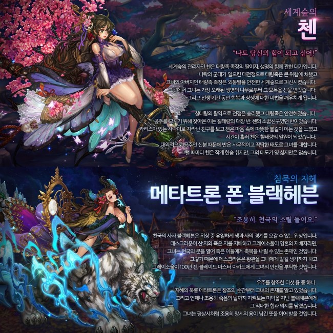 퍼스트임팩트 등급 영웅인 '첸'과 '블랙헤븐'은 힐러 포지션으로 아군 체력 회복과 적 전체 공격능력을 갖고 있다. 또한 첸은 죽은 아군을 부활시키고 무적효과를 부여하는 특수스킬을, 블랙헤븐은 도적과 무사의 체력을 증가시켜주는 특수스킬을 지니고 있다. 게임 내 편의성도 대폭 개선된다. ‘칼리돈 사냥터’는 도전자 던전에서 바로 입장할 수 있도록 변경되고, 보상도 더욱 풍성해진다. ‘도전자 던전’, ‘자원쟁탈전’, ‘버스터’ 등의 콘텐츠 화면은 직관적이고 쉽게 확인할 수 있도록 바뀐다.