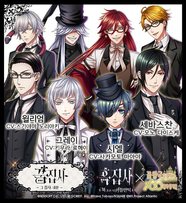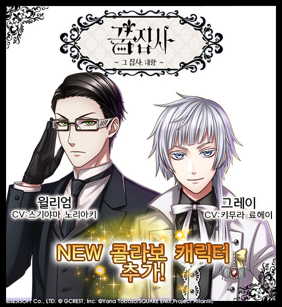 오늘 업데이트된 극장판 ‘흑집사 북 오브 더 아틀란틱’ 2차 콜라보에는 1차에서 등장했던 주인공인 시엘과 세바스찬, 그렐, 언더테이커 등 흑집사의 주요 등장인물들과 함께 ‘윌리엄 T 스피어스(CV : 스기야마 노리 아키)’와 ‘찰스 그레이(CV : 키무라 료헤이)’가 꿈왕국의 이벤트 캐릭터로 등장한다.