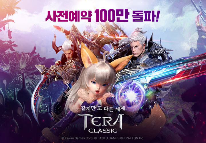 카카오게임즈(각자 대표 남궁 훈, 조 계현)는 18일(목), 란투게임즈(LANTU GAMES, 대표 양성휘)에서 개발한 대작 모바일 MMORPG <테라 클래식>의 사전 예약자 수가 100만 명을 돌파했다고 밝혔다.