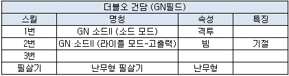 스킬은 방어력 업과 확장 부스터로 평범하지만 기본적으로 방어력이 낮고 빠른 행동이 필요한 스트라이크 느와르 건담에겐 매우 적당한 스킬이라고 생각된다.
