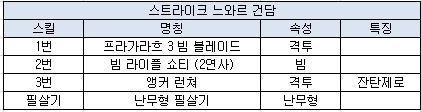 스트라이크 느와르 건담은 체력과 대미지가 약한 대신 빠른 움직임과 공격속도를 무기로 하는 유닛으로 기존의 캐릭터들는 색다른 컨셉이다. 최대한 스피드를 이용해 치고 빠지는 전술을 적극 활용하자.