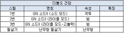 변신 후에는 무기가 2개 밖에 없고 변신 전으로 원상복귀가 안되지만 1번 공격의 대미지가 무척 세고 근접전 필살기까지 함께 사용하면 상당히 좋은 모습을 보여줄 것이다.