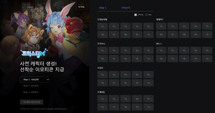 <트릭스터M>은 오늘(16일) 00시 사전 캐릭터 생성을 시작했으며 준비된 60개 서버가 조기 마감되어 각 서버의 수용 인원을 증설했다. 이용자는 <트릭스터M> 브랜드 사이트와 엔씨 크로스 플레이 서비스 ‘퍼플’에서 캐릭터와 컴퍼니를 미리 만들 수 있다.