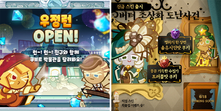 데브시스터즈는 개발 스튜디오 쿠키런이 개발 및 서비스하는 모바일 러닝게임 <쿠키런: 오븐브레이크>에 ‘탐정런! 버터 초상화 도난사건' 업데이트를 진행했다고 오늘(28일) 밝혔다.