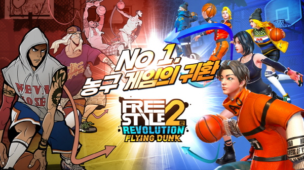 <프리스타일2: 레볼루션 플라잉덩크>는 손맛 살아있는 3대3 대전을 즐길 수 있는 실시간 대전 농구 게임이다. 이용자는 개성 확실한 캐릭터별 필살기 스킬과 모든 디자인을 자유롭게 꾸밀 수 있는 나만의 홈코트 농구장 커스텀, 스타일리쉬하면서도 고퀄리티 캐릭터 및 패션 등을 통해 더 트랜디한 길거리 농구를 즐길 수 있다.