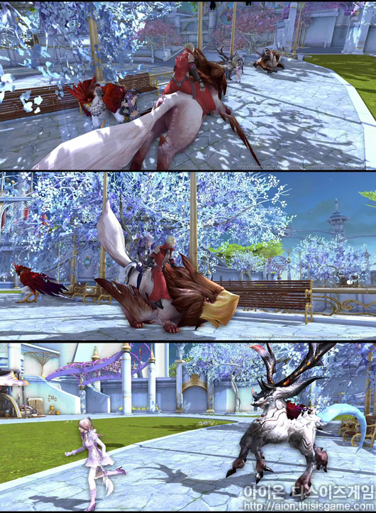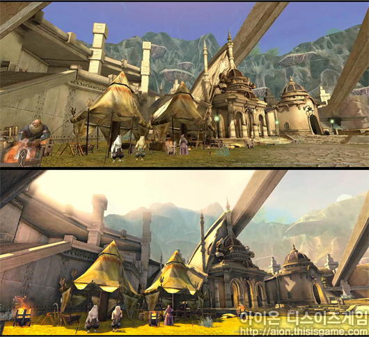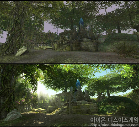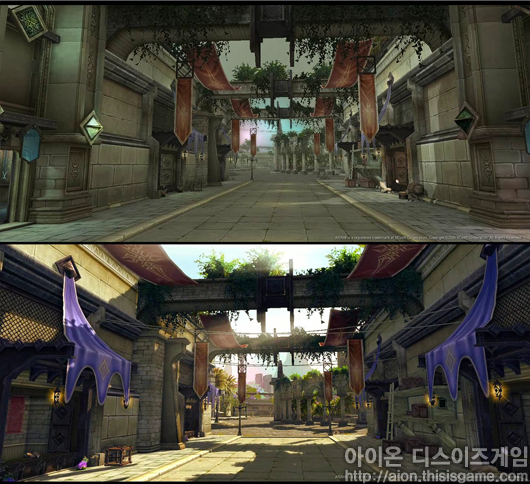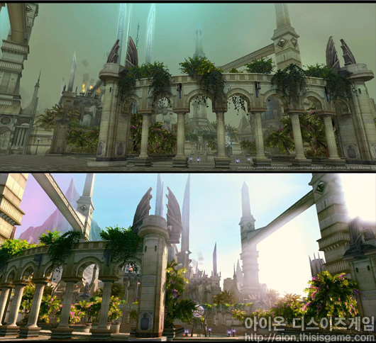 엔진의 업데이트를 통해 태양광 효과, 음영, 광원 효과등이 한층 업그레이드 된 것으로 보이며, 빛의 움직임에 따라 그림자 효과도 향상 된 것 같다. 이를 통해 <아이온>을 더욱 현실감 있게 즐길 수 있을 것으로 보여진다.