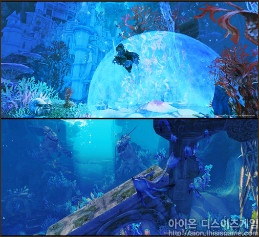<아이온> 유저 중 마족이라면, 한 번쯤 알루키나의 궁전을 가본 기억이 있을 것이다. 이곳은 수중 지역이지만, 날개를 펴야 다닐 수 있는 지역이였다. 그래서 비행시간이 끝나면 빠져죽는 것이 아니라 단순히 떨어져 죽는 사태가 발생했는데, 앞으로 업데이트 될 미래 비전에서는 물에서 떨어져 죽는 일은 없을 것으로 보인다.