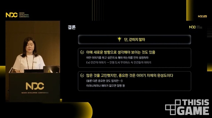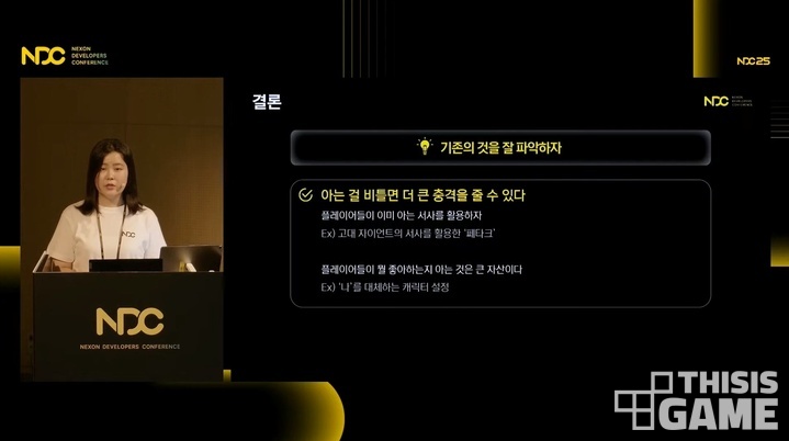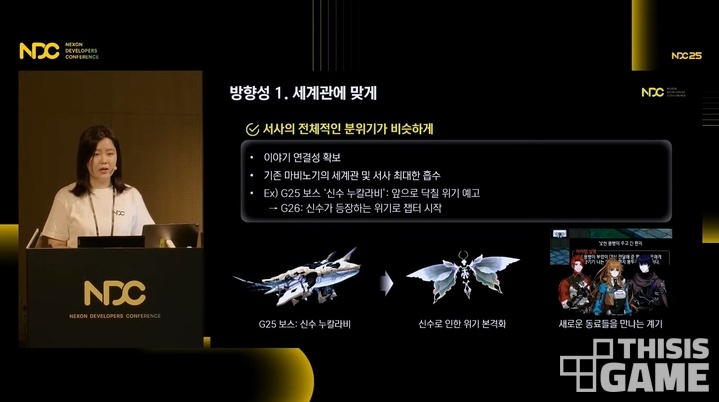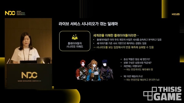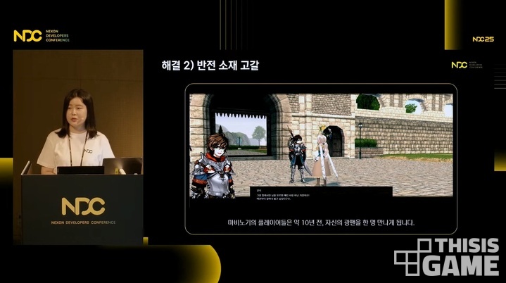 넥슨코리아 마비노기 콘텐츠 유닛의 전유진 시나리오 기획자는 <마비노기> 메인 스트림 G26과 G27을 쓴 개발자다. 그는 과연 이들 시나리오를 쓰면서 어떤 고민을 했을까? 26일 NDC 25에서 이에 대한 이야기를 들어볼 수 있었다.
