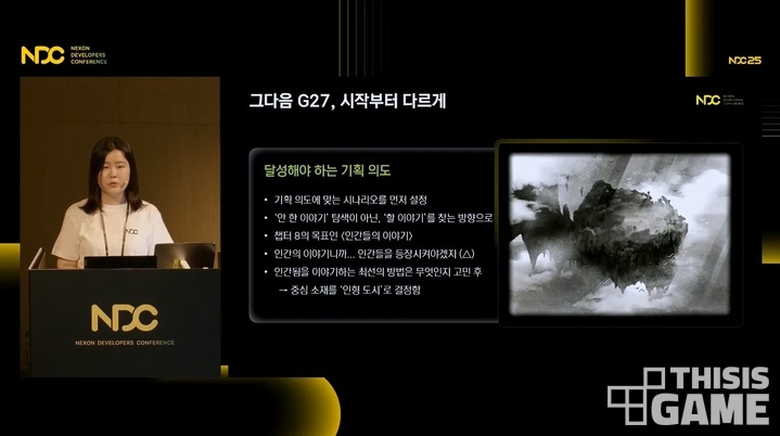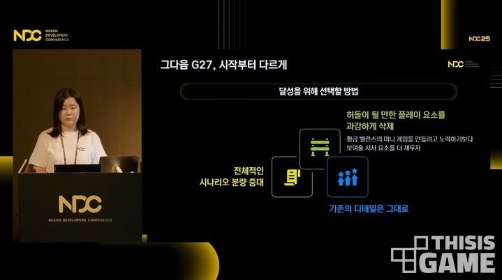 G26의 부정적인 반응 이후, G27을 준비하면서 전유진 개발자는 생각을 고쳐먹기로 했다. 무엇보다 '안 한 이야기'를 탐색하는 것이 아니라 '할 이야기'를 찾고, '기획 의도에 맞는' 시나리오를 쓰는 것에 집중하기로 한 것이다.