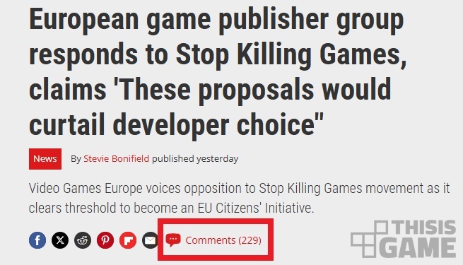 ▲ "스탑 킬링 게임" 운동이 100만 서명 이정표를 넘어선 시점이기 때문에, 비디오 게임 유럽과 같은 단체가 "스탑 킬링 게임" 운동에 반대한다는 성명을 냈다.