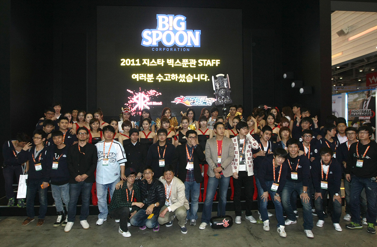 지스타 2011 폐막 모습, 세 번째는 여러 부스의 사진을 모았습니다. 위에서부터 순서대로 블리자드, 컴투스, 빅스푼, 레드5입니다. 모두들 수고하셨어요.