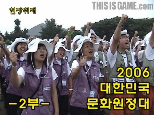 디스이즈게임은 6월 25일부터 7월 21일까지 27일간 진행되는 '2006 대한민국 문화원정대' 동영상을 공개합니다. 동영상은 총 3부작으로 만들어졌습니다. 이번 영상은 7월 3일 새벽부터 밤까지의 일정을 취재한 것입니다. /디스이즈게임