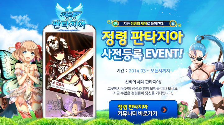 다음은 ‘정령 판타지아’의 출시를 앞두고 사전 등록 이벤트를 실시한다. 이벤트 페이지를 통해 사전 등록한 회원에게는 한정 정령 교환권을 전원 지급한다. 또 맥북에어, 플레이스테이션4 등을 추첨으로 증정하며, SNS에 링크를 올리는 회원 중 20명에게는 문화상품권 5만원권, 100명에게는 1만원권이 주어질 예정이다.