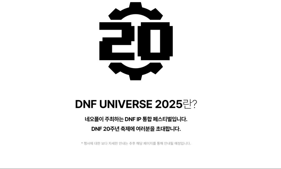 2025년 여름, ‘던전앤파이터’의 20주년을 기념할 대규모 오프라인 행사가 예정돼 있었다. ‘DNF 유니버스 2025’라는 이름 아래 네오플은 자사 대표작인 <던전앤파이터>와 <던파 모바일>, <퍼스트 버서커: 카잔>, <사이퍼즈> 등 주요 타이틀을 집결시켜 행사를 열 계획이었다. 유저들이 직접 만든 콘텐츠 또한 이곳에서 전시될 예정이었다. 그러나 7월은 15일, 이 행사는 전격 취소됐다. 이유는 "완성도 부족"이었다.