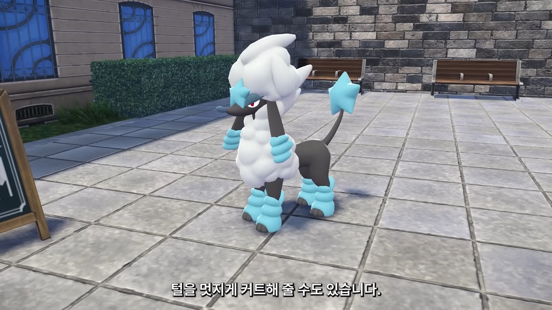 털이 긴 포켓몬의 털을 커트해준 장면이다.