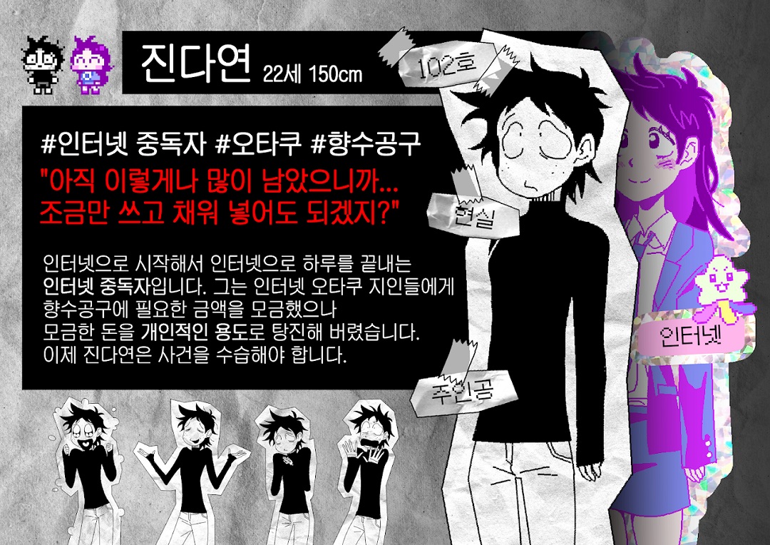 <파멸의 오타쿠>는 오타쿠 향수 공동구매 총대를 맡은 히키코모리 오타쿠 주인공 ‘진다연’이 실수로 공금을 사적인 용도로 쓰면서, 14일 만에 어떻게 그 돈을 다시 모을 것인지에 대한 이야기를 그린 스토리 어드벤처 게임이다. 주인공을 파멸로 이끌게 될 것인지, 혹은 갱생시켜 어엿한 사회인으로 살아가게 만들 것인지, 플레이어의 선택에 따라 다양한 엔딩을 볼 수 있는 게 특징이다.