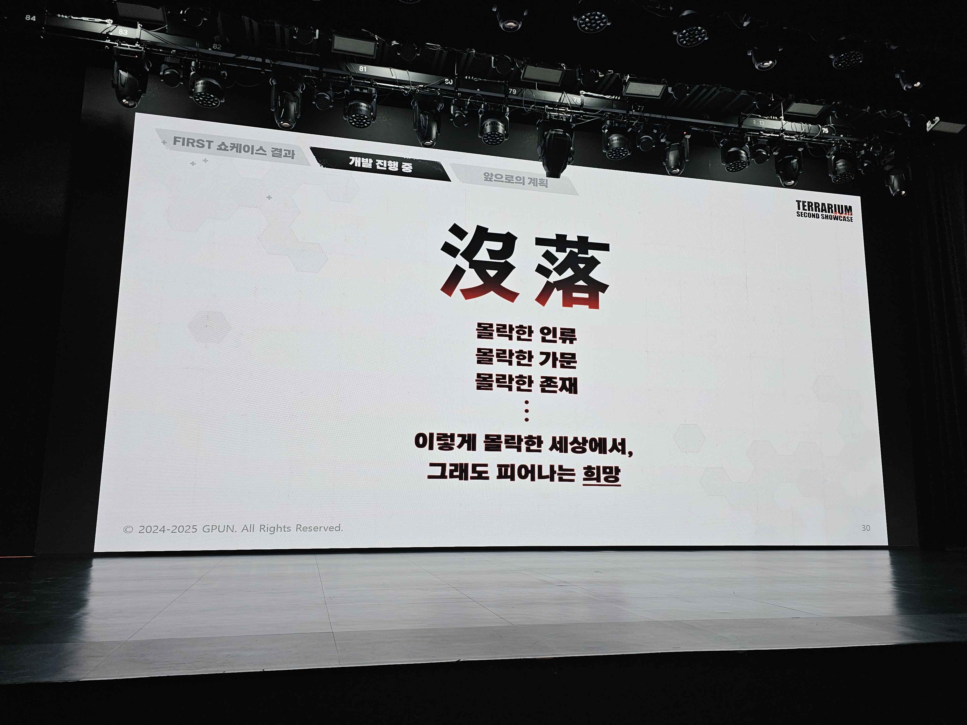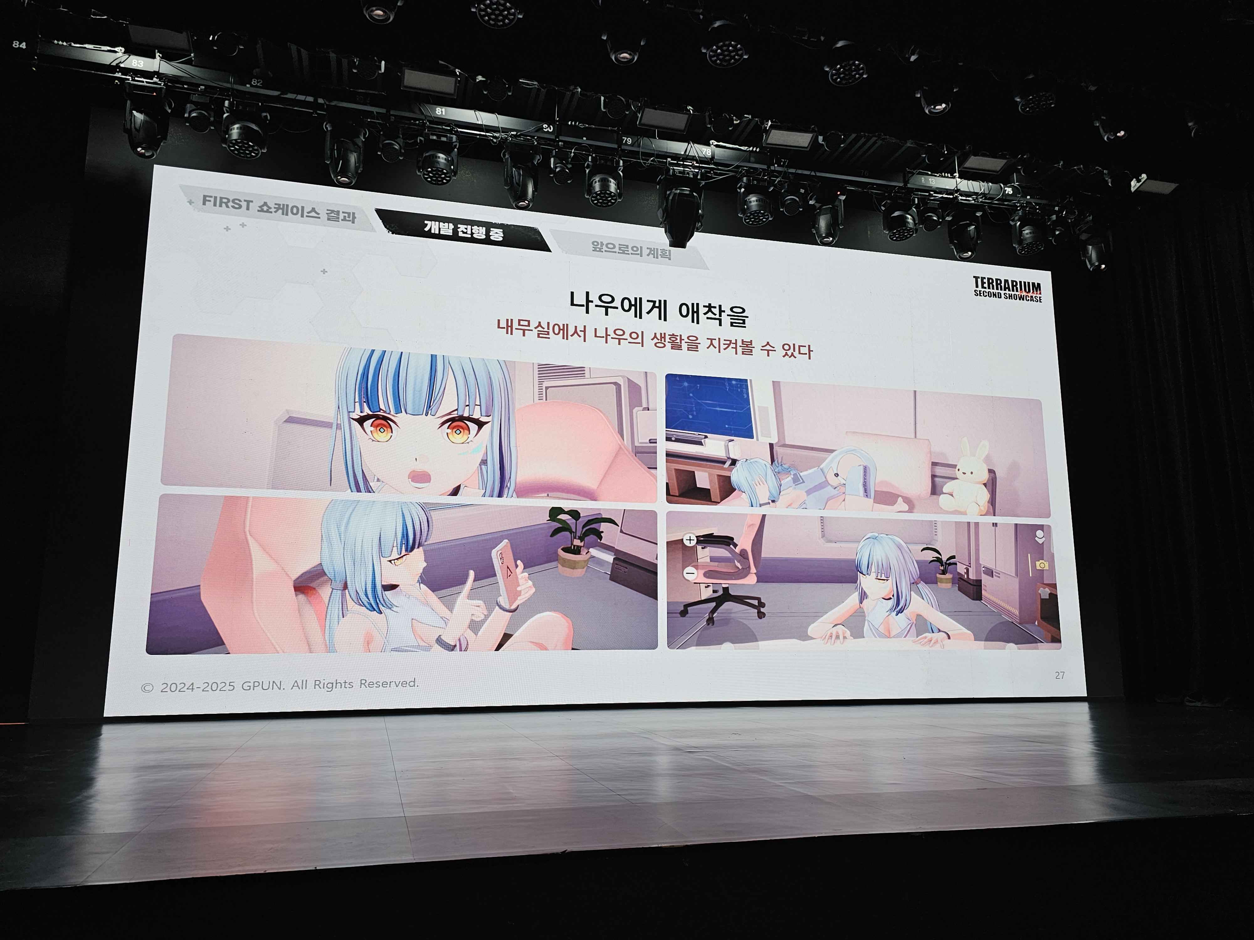 30일, 국내 개발사 지피유엔(GPUN)에서 개발 중인 모바일 서브컬처 게임 <테라리움>이 게임 업계 관계자들을 대상으로 2차 오프라인 쇼케이스를 진행했다. 작년 10월 진행된 쇼케이스 이후 두 번째로 진행된 행사로, 현재 <테라리움>은 본격적인 개발 과정에 돌입한 상태다.