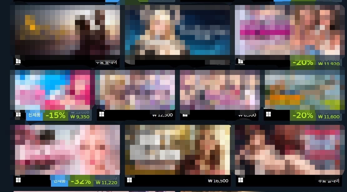 ▲ 스팀에서 '성인 전용'으로 판매되고 있는 게임들. 설정을 통해 자신의 상점에 노출되지 않도록 할 수도 있다.