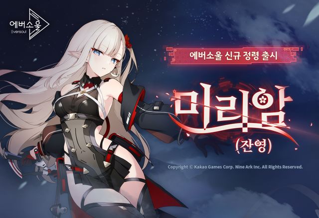 ㈜카카오게임즈(대표 한상우)는 8일, 나인아크(대표 이건)가 개발한 모바일 수집형 RPG ‘에버소울’에 신규 요정형 정령 ‘미리암(잔영)’을 추가했다.