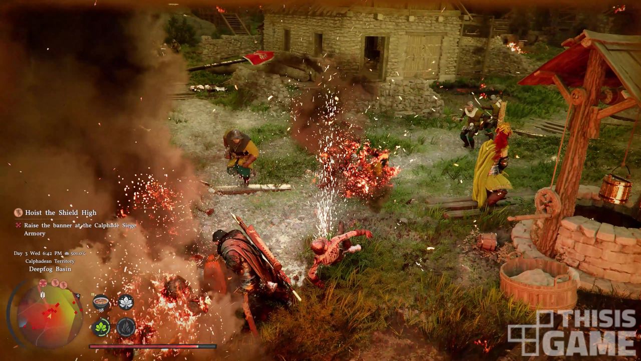 이동의 자유로움은 이번 빌드에서 가장 두드러졌다. 세 번의 점프와 활강으로 전장을 가로지르고, 로프를 걸어 고지대를 단숨에 점령하는 장면은 단순한 시각적 장치가 아니라 플레이 자체를 입체적으로 만들었다. 하지만 약공격, 강공격, 그래플링, 원거리 화살 공격에 HP 회복과 스태미나 관리에 특수 공격까지 쏟아지면서 조작감에 어려움을 겪었다. 몇 번의 시연에도 이런 지점을 유지한다는 점에서 이것은 개발진의 철학에 가까울 것인데, 정식 출시에서는 플레이어들이 얼마나 조작이 익숙해질지 궁금하다.