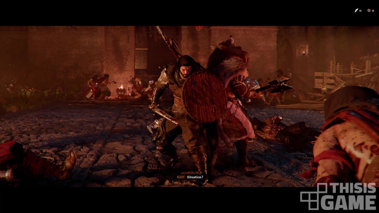 보스전으로 가는 짧은 시간 중에도 주인공을 둘러싼 더 큰 서사의 단서들이 흩뿌려져 있었다. 함정에 빠져 뿔뿔이 흩어진 동료들, 그중에서도 웅카와의 재회는 단순한 전투 이상의 의미를 지녔다. 동료들의 존재는 <붉은사막>이 가벼운 이야기가 아니라 오디세이 군상극을 추구하고 있음을 암시한다. ‘검은곰'을 비롯해 게임에서 맞닥뜨릴 적들의 존재와 그들이 적이 되어야만 하는 이유 등등은 줄거리에 재미를 더할 것이다.