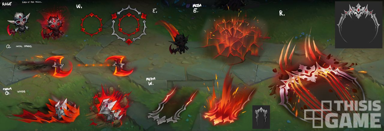 스킬 이펙트는 ‘제우스’라는 자신의 닉네임에 걸맞게 번개가 포함된 VFX 효과를 추가해달라는 그의 요청을 반영하여 제작됐다. 전체적으로 붉은색 톤으로 그려진 스킬 이펙트에선 ‘Heavy Is The Crown’의 로고를 곳곳에서 찾아볼 수 있다.
