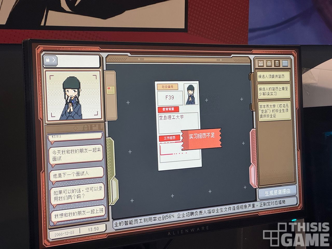 ▲<지원해주셔서 감사합니다>(Thank You for Your Application)는 면접관이 되어 지원자들의 합격, 불합격 여부를 판단하는 시뮬레이터다. 이 게임은 도쿄게임쇼에도 출전할 예정이다.