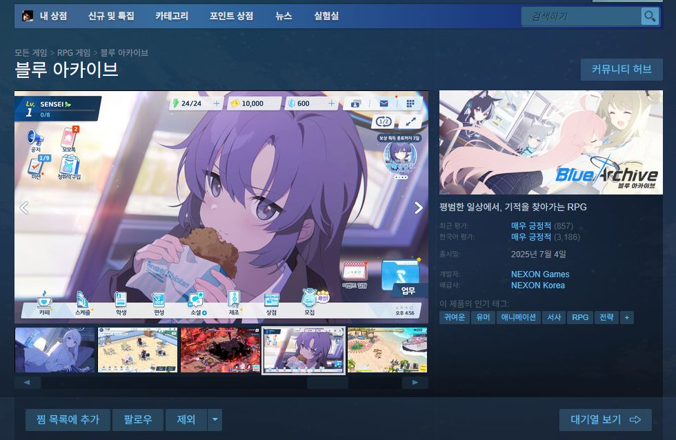 ▶ 모바일에서 교두보를 마련하고 스팀 버전을 선보인 <블루 아카이브>.
