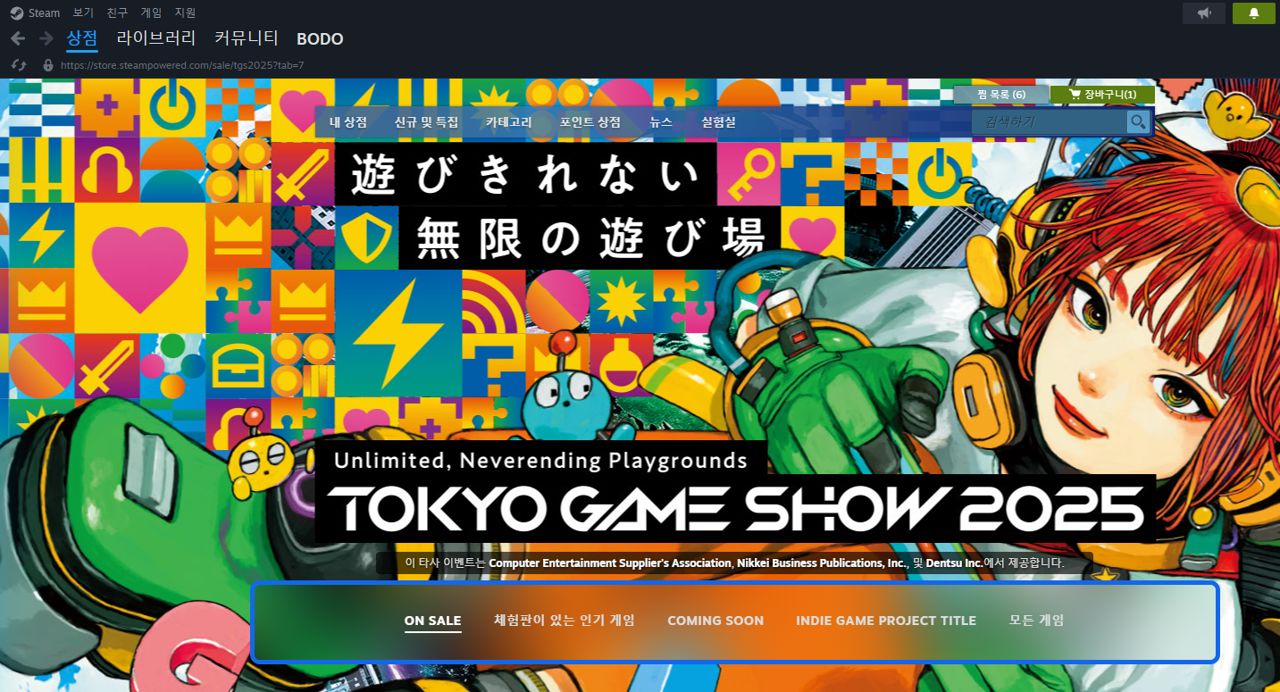 ▶ 도쿄게임쇼 2025 특별 페이지도 스팀에 올라오고 있다.