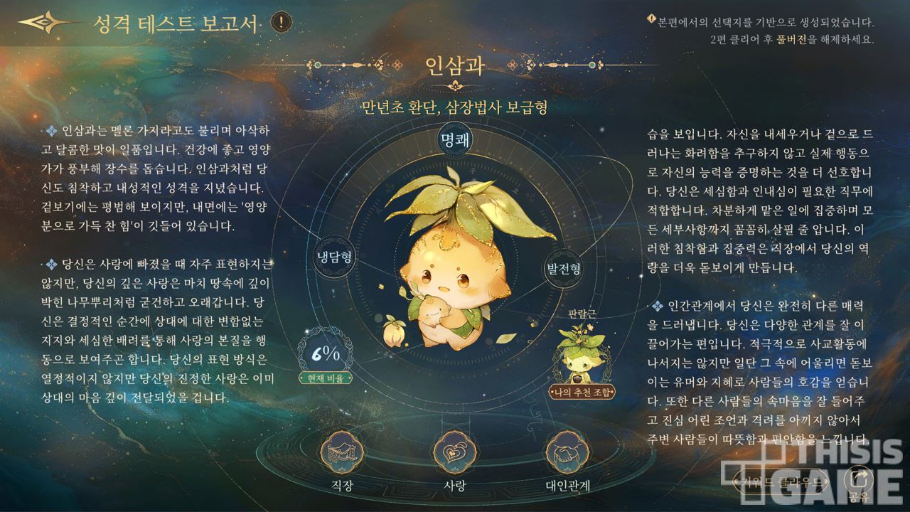 ▲ 게임을 클리어하면 성격 유형 테스트 결과지도 (재미로) 받을 수 있다.