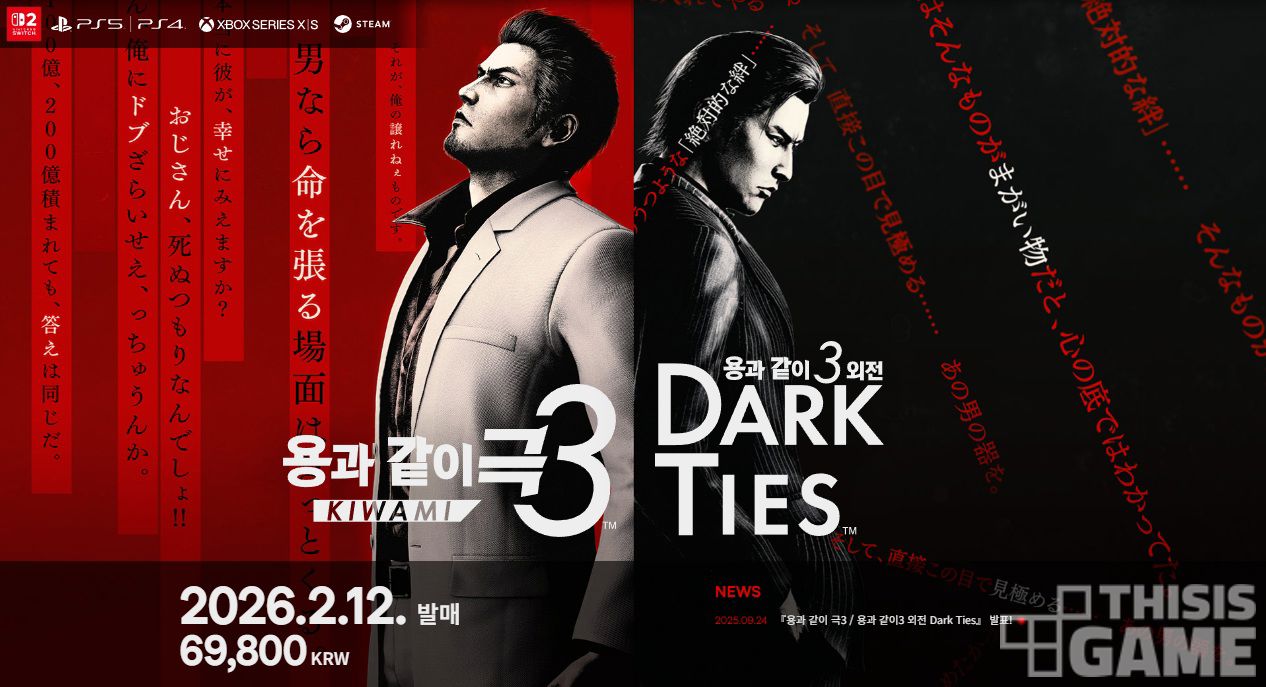 용과 같이 스튜디오(이하 RGG 스튜디오)는 팬덤을 뒤흔들 파격적인 발표를 단행했다. 16년 전의 타이틀인 <용과 같이 3>를 현세대 기술로 완벽하게 재탄생시킨 <용과 같이 극 3>와, 비운의 인기 캐릭터 '미네 요시타카'의 알려지지 않은 과거를 그린 <용과 같이 3 외전 다크 타이즈>의 동시 발매 소식이었다.