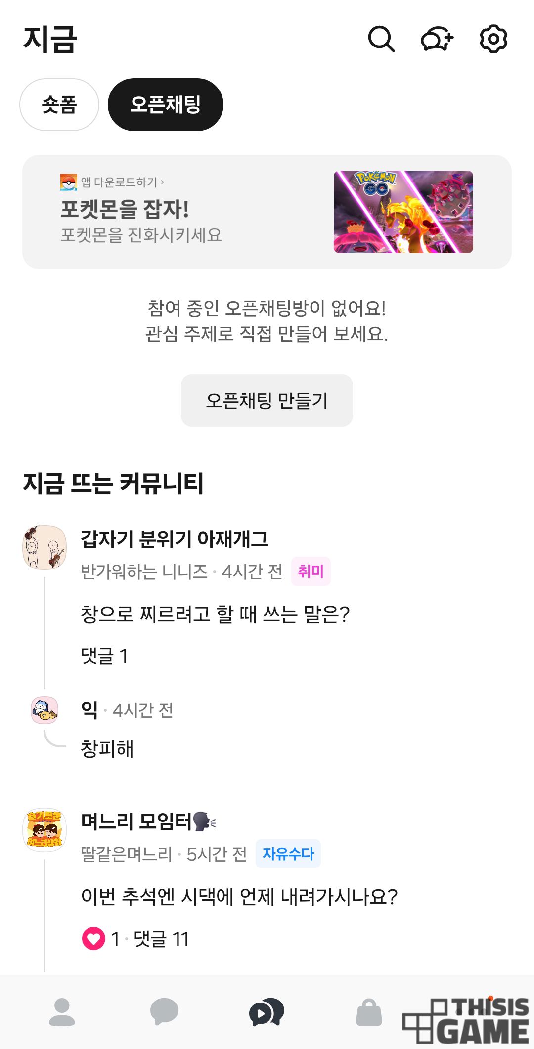 ▲ 카톡 '지금' 하단에 있는 오픈채팅 탭 예시. 기자는 아재도 며느리도 아니다. 추천 기준이 뭘까.