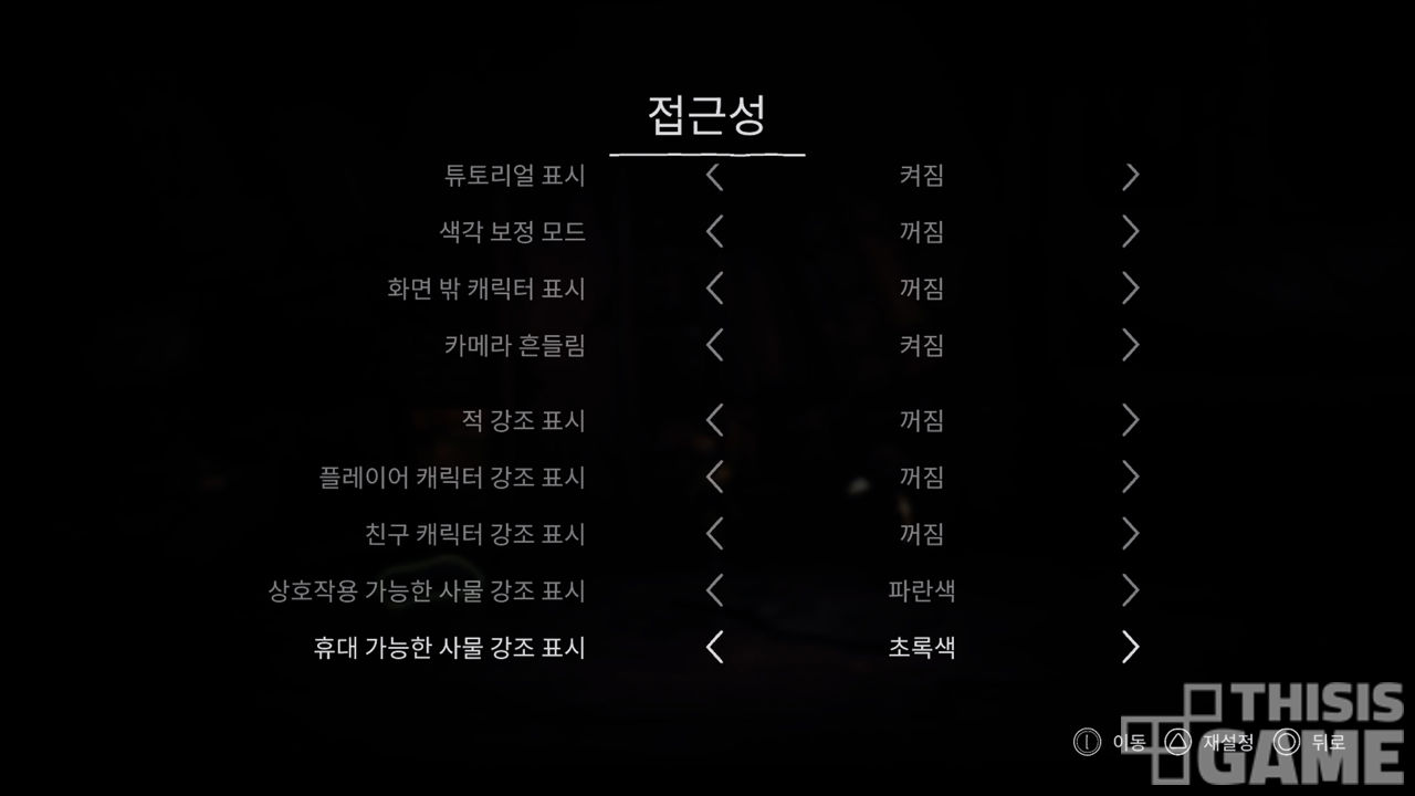 - 낮은 시인성과 이를 해결하기 위해 켜기엔 게임성을 해치는 접근성 옵션