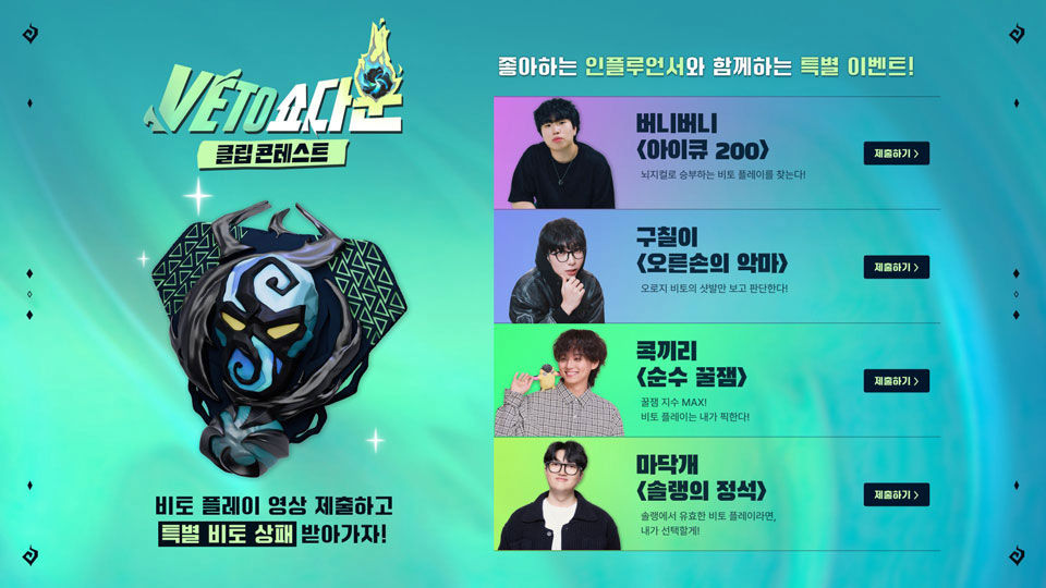 또한 비토의 콘셉트를 반영한 '비토 쇼다운 클립 콘테스트'도 함께 진행된다. 참가자들은 비토의 스킬을 활용한 플레이 영상을 제출할 수 있으며 인플루언서 심사를 통해 각 테마별 상위 10명이 선정되어 특별 상패와 굿즈를 받을 수 있다.