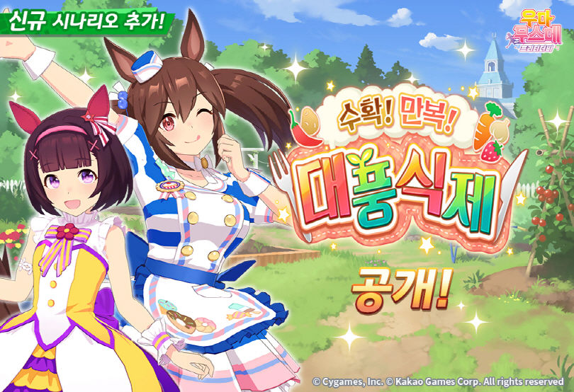 카카오게임즈는 15일, 사이게임즈가 개발한 인기 게임 <우마무스메 프리티 더비>에 신규 육성 시나리오 '수확! 만복! 대풍식제'를 업데이트했다.