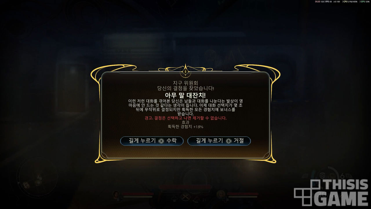 게임 진행에 있어 가장 비중이 높은 건 대화를 나누고 기록을 읽는 시간입니다. 유사한 서양식 RPG를 좋아하는 분들이라면 이 시간이 즐겁기를 고대하실 텐데요.