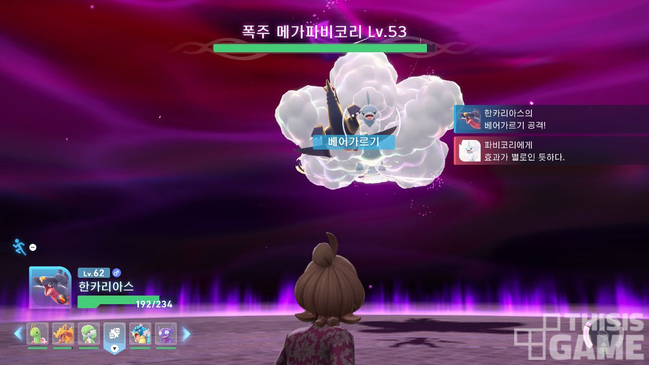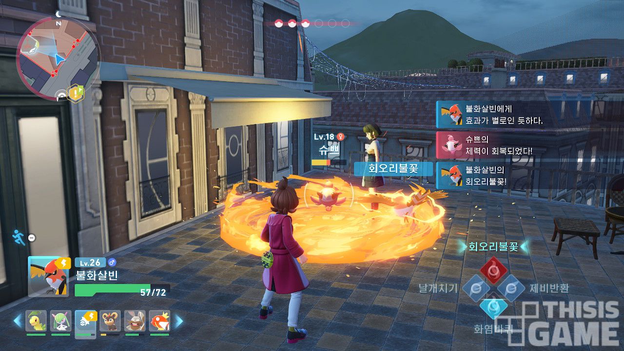 하지만 <레전즈 Z-A>의 전투는 다르다. pp(기술 사용 횟수)도 없고, 턴 개념도 없다. 사거리와 범위, 쿨타임, 시전 시간이 다른 기술들을 적절히 사용해야 한다. 같은 맥락에서 ‘메가진화’ 또한 한 번의 전투에서도 게이지만 충전되면 여러 차례 사용할 수 있다. 한 번의 전투 템포가 빨라진 만큼 전투 횟수도 굉장히 잦아진 게 특징이다.