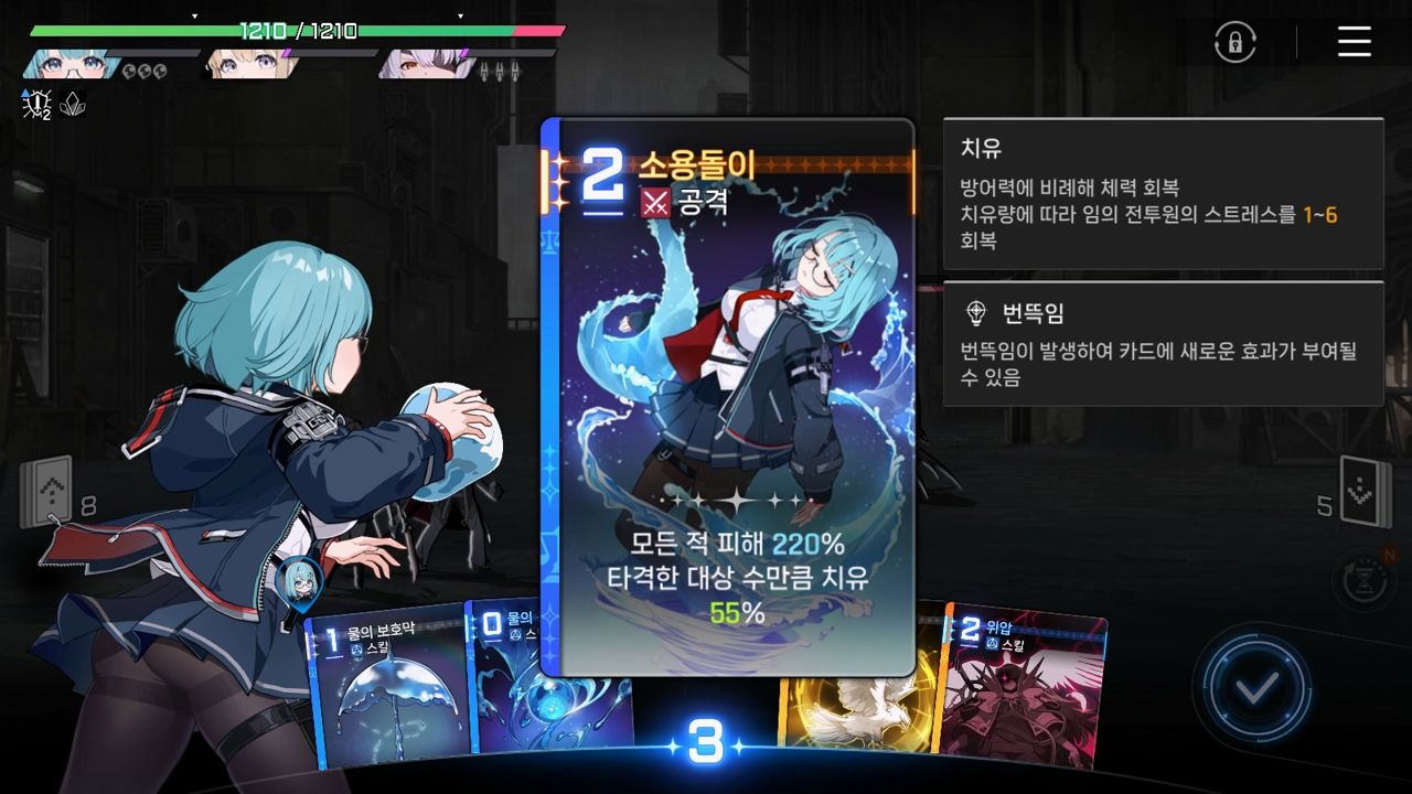 전투 자체는 카드를 이용해서 턴제로 공/방이 이루어진다. 딱 <슬레이 더 스파이어> 생각하면 된다.