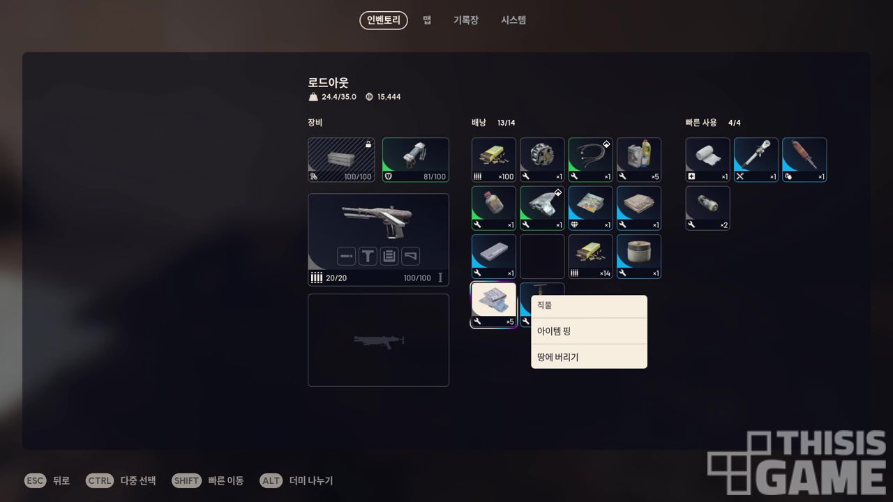 또한 <아크 레이더스>의 모든 아이템은 그 크기나 가치와 무관하게 모두 1칸의 인벤토리 슬롯을 차지한다. 교전에 활용할 수 있는 투척물이나 회복 수단 같은 도구들은 습득 시 빠른 사용 슬롯에 우선적으로 들어가기에 인벤토리 정리에 대한 부담이 적다.