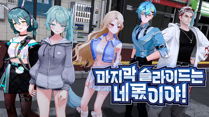 <마지막 슬라이드는 네 몫이야> 미츄 소속 인기 버튜버 마젯, 앵보, 세노, 모아, 하지유가 주인공인 액션 게임으로 5명의 캐릭터가 펼치는 배신과 우정의 드라마를 주 된 내용으로 한다.