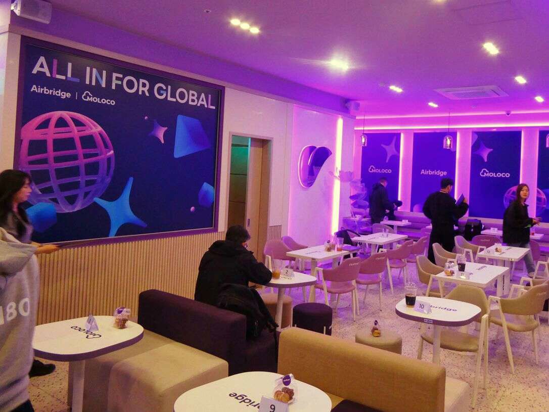 이곳은 B2B 관 인근에서 몰로코와 에어브릿지가 운영하는 라운지다. 몰로코는 유튜브 알고리즘 개발자가 시스템을 개발했다는 사실만으로 이름이 알려져 있을 정도로 게임사 사이에서는 높은 인지도를 가지고 있다.