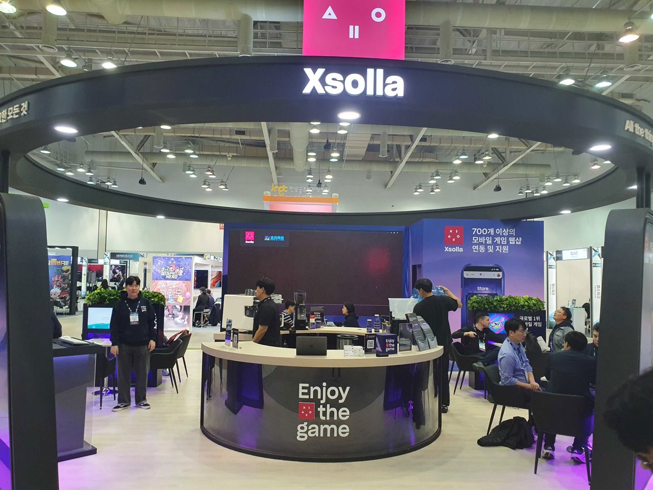 가장 처음 방문한 결제사 부스는 엑솔라(Xsolla)입니다. 국내외 시장을 선도하는 글로벌 커머스 솔루션 기업답게 크고 화려한 부스가 발걸음을 사로잡았습니다.