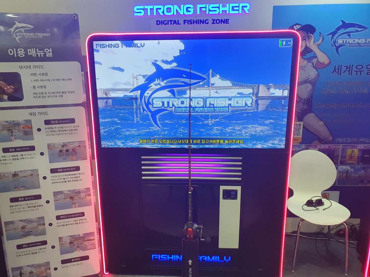 이번 부산 공동관 B2B 관에서는 다양한 콘텐츠가 출품되어 눈길을 끌었습니다. 모바일 무쌍 액션 <스네이크 슈터>, 귀여운 고양이 캐릭터와 퍼즐 요소를 결합한 <냥냥줍줍>, 그리고 실제 낚싯대를 활용한 체험형 대전 게임 <스트롱피셔> 등이 눈길을 사로잡았습니다. 이 외에도 유명 수집형 RPG <킹스레이드>, 방치형 게임 <용감한 댕댕이 키우기> 등 여러 장르의 게임들이 공동관에 함께 전시되어 부산 게임 산업의 폭넓은 스펙트럼을 보여주었습니다.