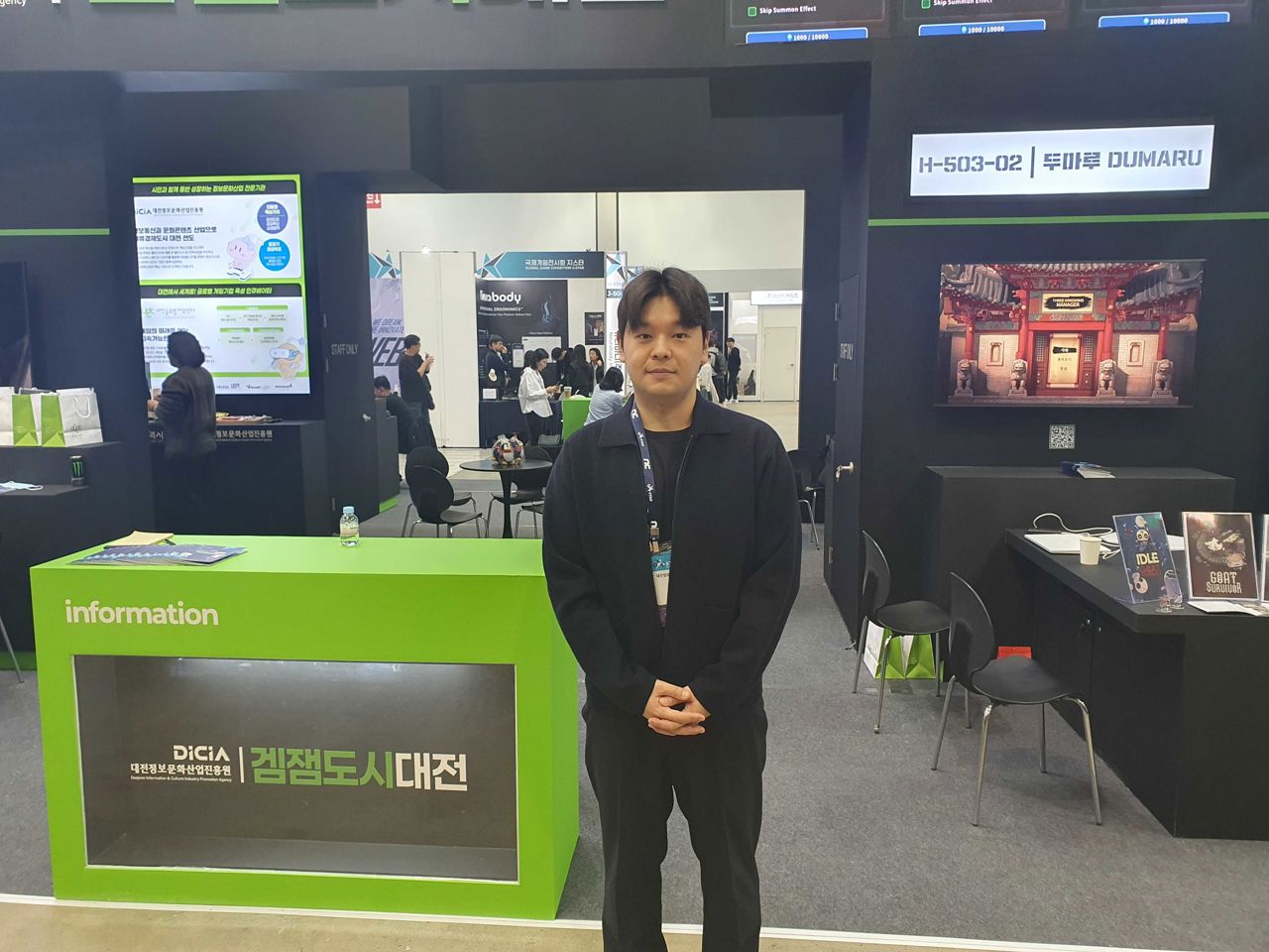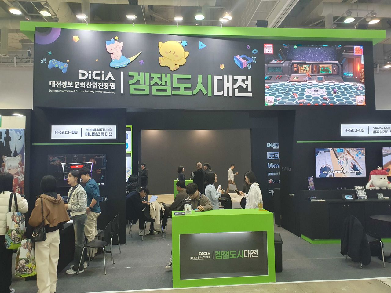 두 번째로 발걸음을 향한 곳은 대전 지역 공동관입니다. 대전정보문화산업진흥원이 주최했으며 인디 게임 개발을 위주로 하는 대전 소재 기업들을 지원하기 위해 기획되었습니다.