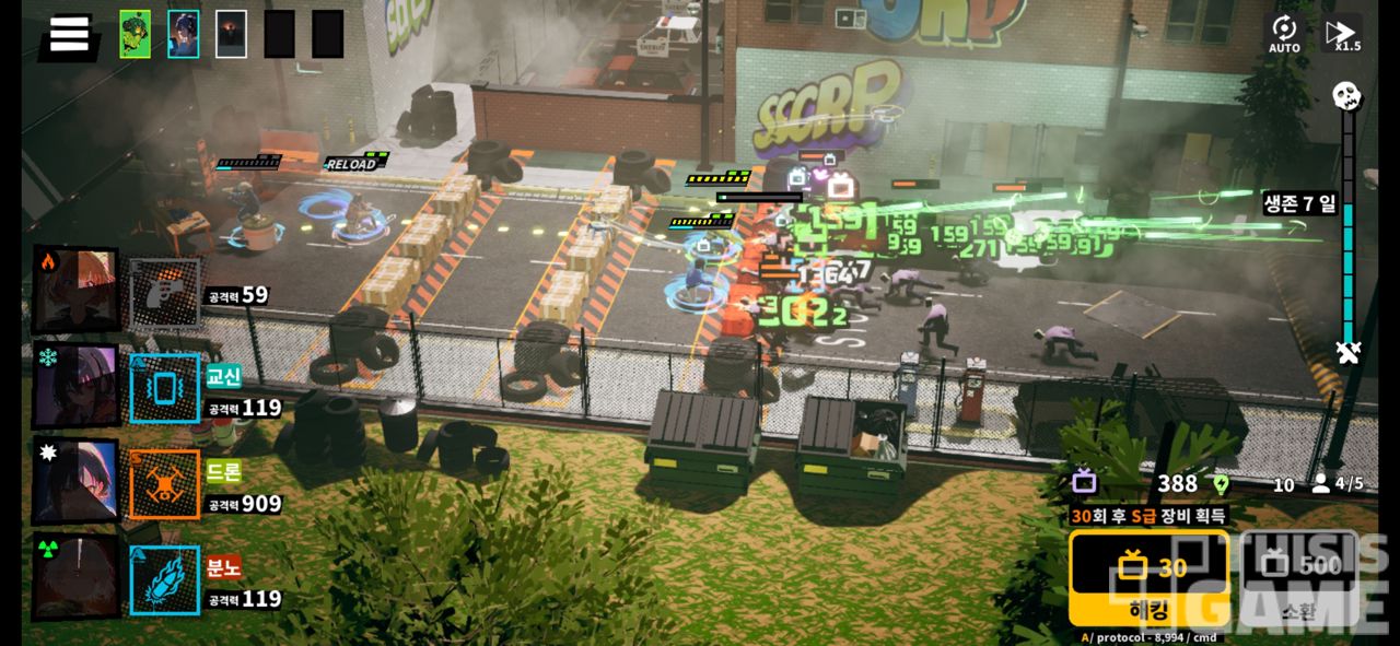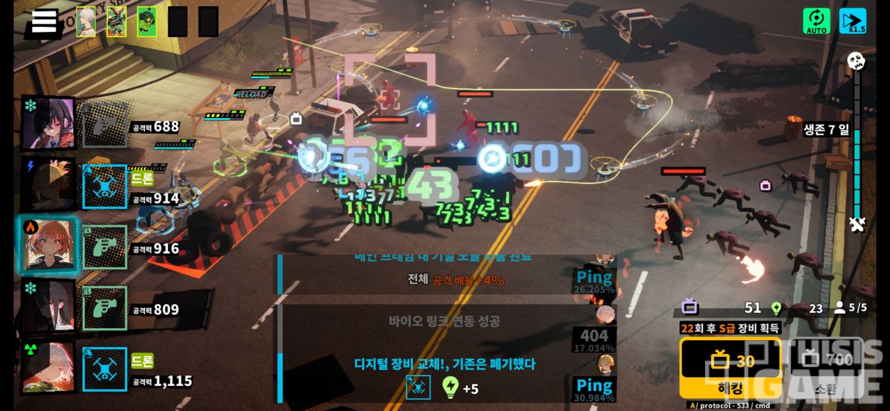 Q. 전투 전반은 오토로 진행되는 영역들이 있고, 유저가 스킬이나 해킹(파밍), 캐릭터 출격 시점 등에 대해서는 선택하는 구성이잖아요. 유저의 선택이 어떤 플레이 스타일들로 이어지게 되나요?