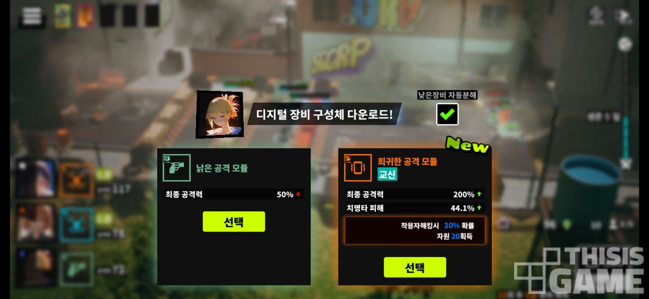 플레이해보셨다는 구글플레이에 올라간 사전체험 빌드는 조금 이전 빌드인데, 최근 빌드는 장비를 선택하지 않고 버릴 때 남는 자원들로, 직접 원하는 테크트리로 갈 수 있게 선택권을 주게끔 하고 있어요.