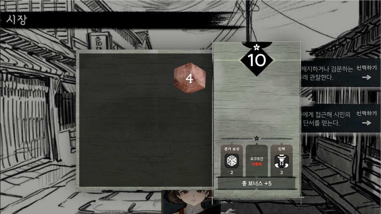 다만 운이 미치는 영향이 너무 커지면 그것도 문제다. 그래서 취재의 내용을 오전과 오후로 나누고 운의 영향을 크게 받는 오전 취재의 영향을 많이 줄였다. 오전 취재는 주사위 판정으로 진행되지만, 실패하더라도 오후 취재가 불가능한 것은 아니다. 대신 메인 스토리를 이끌어가는 오후 취재는 미니 게임을 통해 플레이어가 직접 컨트롤하여 결과를 만들어낼 수 있도록 변경했다.