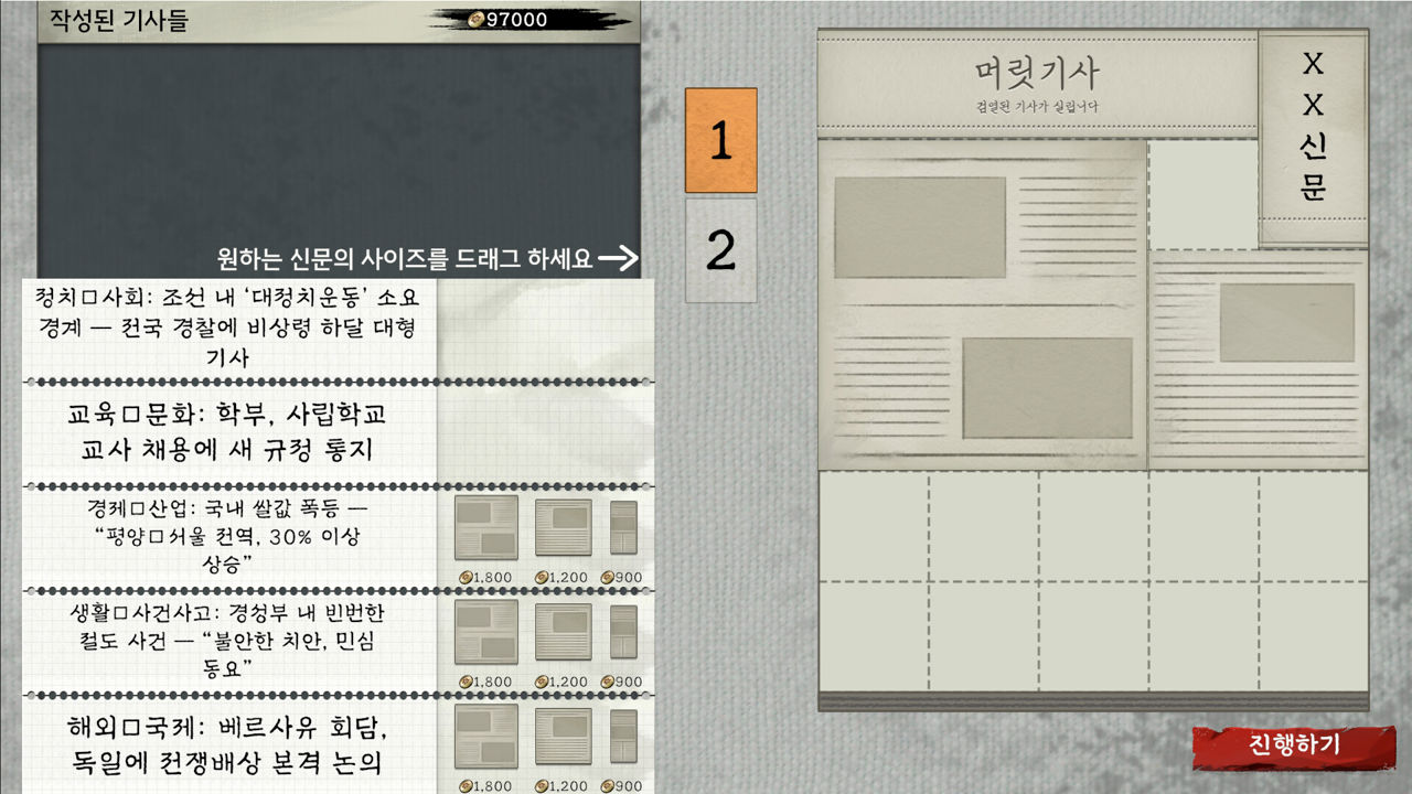 ► 당대 있었던 사건과 이야기들을 종합해 신문을 발행하는 것이 게임의 골자다.