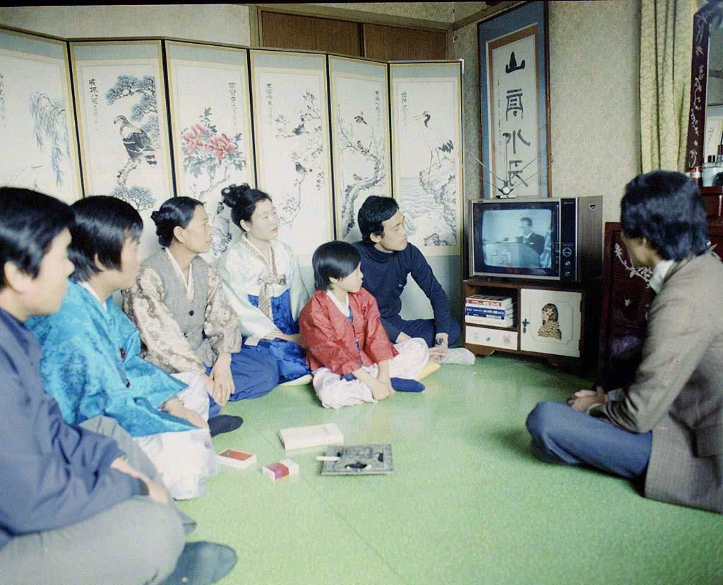 ▶ 가족들이 한 자리에 모여 TV를 시청하는 모습. 오늘날 이런 모습을 볼 수 있는 집이 얼마나 있을까? (사진 출처: 한국기록원)